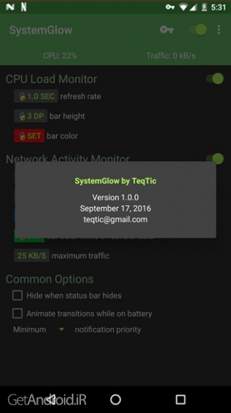 برخی از ویژگی های برنامه SystemGlow اندروید :