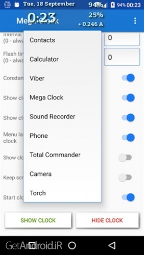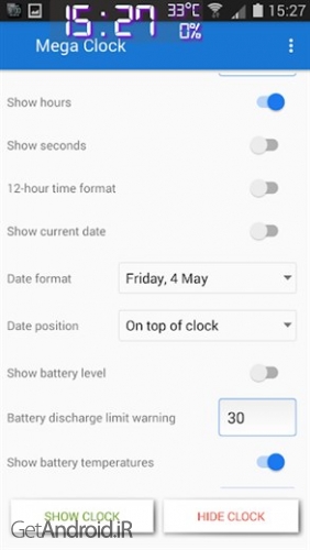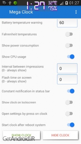 - زمانی که شما جهت صفحه را تغییر دهید، ساعت می تواند به طور خودکار پنهان شود.