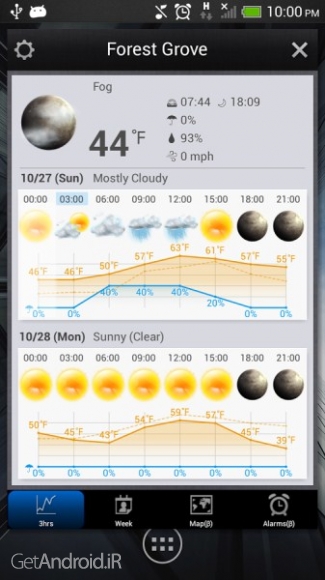 موقعیت GPS و اطلاعات پیش بینی هر ساعت بروز می شوند. برای بروز رسانی بطور دستی، گزینه Update now را کلیک کنید.