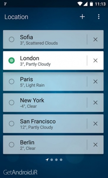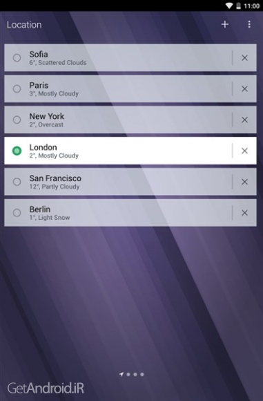 - اضافه کردن چندین مکان مختلف و پیگیری شرایط اب و هوایی انها