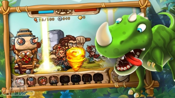 یک بازی فانتزی اکشن برای گوشیها و تبلتهای اندرویدی است که توسط استودیوی gameone منتشر شده و در دسترس کاربران مارکت گوگلپلی قرار گرفته است. در این بازی شما به گذشته سفر کرده و با صحنه های جالبی روبرو میشوید؛ جایی که در آن انسانهای نخستین در غارها بسر میبرند. اما برخلاف انتظار هنوز دایناسورها از بین نرفته و در نقاط مختلف زندگی میکنند. همین امر سرآغازی میشود بر یک مبارزه بین دایناسورها و انسانهای غانشین. در طول بازی که دارای جنبه های استراتژیکی هم میباشد، شما باید قبیله (Clan) خود را ساخته و ضمن دفاع از پناهگاه خود به مبارزه با دایناسورها بپردازید. همانند اکثر بازیهایی که دارای سیستم ارتقا هستند، در این بازی هم با سپری کردن مراحل موفق به کسب امتیازهای متعدد خواهید شد که میتوانید با استفاده از آنها سربازان و نیروهای خود را تقویت کرده و قدرتمند تر به مصاف دشمنان خود بروید و آنها را از پا در بیاورید.ویژگیهای بازی Caveman Vs Dino: