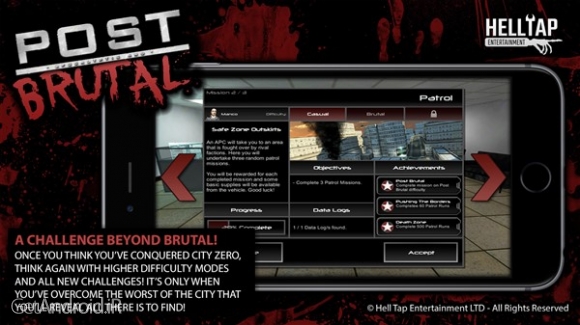 Post Brutal یک بازی اکشن از استودیوی بازیسازی Hell Tap Entertainment LTD می باشد که در مارکت اندروید بصورت رایگان منتشر شده است. شما در مرکز آخرالزمان زامبی ها قرار دارید. تحت تاثیر یک تحولات ناگهانی بیش از نیمی از جمعیت شهر به دیوانه های وحشی تبدیل شده اند. گروهی از بازماندگان تلاش می کنند تا زنده بمانند. شما باید با جمع آوری بیش از 28 سلاح مختلف به مبارزه با زامبی ها بپردازید . همچنین باید بصورت پنهانی به دور از چشم دشمنان حرکت کنید و از بین 8 مهارت یکی را انتخاب کنید که قادر هستید انها را ارتقا دهید.