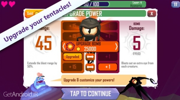 Tentacles – Enter the Mind 1.1.1397 یک بازی اکشن از استودیوی بازیسازی Flashbulb Games می باشد که در مارکت اندروید بصورت رایگان منتشر شده است. به ذهن پروفسور دیوانه خوش آمدید. دکتر Phluff’s دچار یک نوع جنون شده است که فقط شما می توانید او را نجات دهید. با ضربه زدن در مسیری از لایه های پیچ خورده و شگفت انگیز ذهن پروفسور حرکت کنید و در یک جهان سه بعدی یا هیولاهای عجیب و غریبی که در هر گوشه پنهان می باشند به کاوش بپردازید. با کاوش در ذهن وحشت زده دکتر لایه هایی از بدبینی را کشف کنیدکه باید آنها را از بین ببرید. دشمنان را نابود کنید و تخم مرغ های راز و چشم های تابدار را جمع آوری کنید تا قدرت به دست آورید و با توانایی هایی که کسب کردید با دوستان خود به رقابت بپردازید.