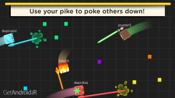 یک بازی اکشن از استودیوی بازیسازی Clown Games می باشد که در مارکت اندروید بصورت رایگان منتشر شده است. شما باید نیزه خود را بردارید و با خوردن مربع های میدان جنگ نیزه تان را بزرگتر کنید و به رقبای خود حمله کنید قبل از اینکه آنها به نیزه شما بزنند و از بازی خارج شوید. بازیکنان را تعقیب کنید تا امتیاز کسب کنید و در طول مبارزه از خودتان دفاع کنید.برخی از ویژگی های بازی Pikes.io Brutal Squad اندروید :