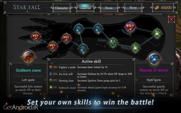 STAR FALL 1.2.1 یک بازی اکشن از استودیوی بازیسازی NextFloor Basement Lab می باشد که در مارکت اندروید بصورت رایگان منتشر شده است که تصمیم گرفتیم برای اولین بار در میان سایت های فارسی زبان در گت اندروید خدمت شما عزیزان معرفی نماییم. از بین شخصیت های مختلف، شخصیت مورد خود متناسب با سبک مبارزه ای خود و با قدرت مشخص انتخاب کنید. سبک مبارزه خود را با ترکیبی از سنگ های مختلف ایجاد کنید و آنها را ارتقا دهید.