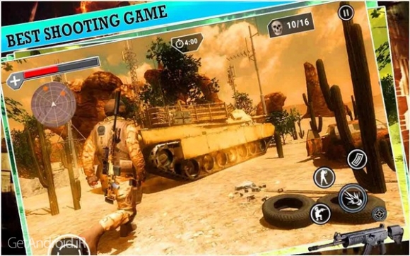 Desert Sniper Shooting 1.3 یک بازی اکشن از استودیوی بازیسازی Best shooting games 2018 می باشد که در مارکت اندروید بصورت رایگان منتشر شده است. شما به عنوان یک کماندوی ارتش وظیفه دارید ماموریت های مختلفی را در بیابان انجام دهید. شما باید دشمنانتان را که سربازان آموزش دیده هستند را نابود کنید و با انواع سلاح ها شروع به تیراندازی به سمت آنها کنید. همچنین شما باید سعی کنید خود را در مکان های مختلف پنهان کنید و به عنوان یک تک تیرانداز نخبه در بیابان مبارزه کنید.