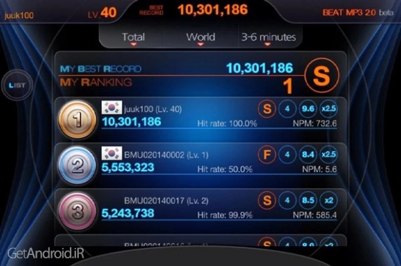 - وارد سایت گت اندروید شده و از بخش جستجو عبارت "BEAT MP3 2.0 - Rhythm Game" را تایپ کنید
