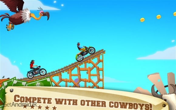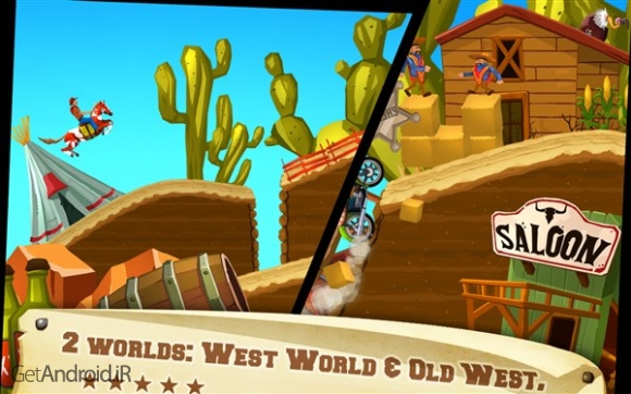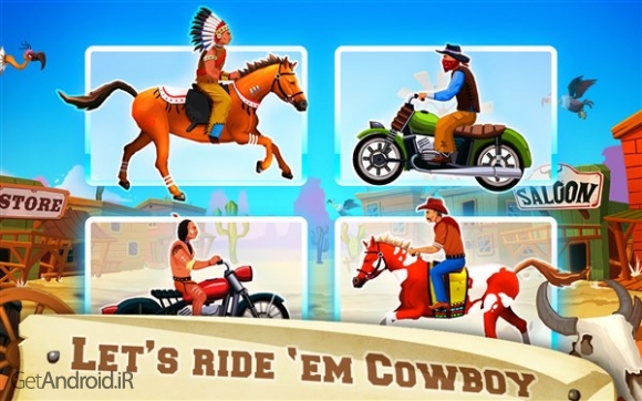 Wild West Race 3.61 یک بازی اکشن از استودیوی بازیسازی Tiny Lab Productions می باشد که در مارکت اندروید بصورت رایگان منتشر شده است که تصمیم گرفتیم برای اولین بار در میان سایت های فارسی زبان در گت اندروید خدمت شما عزیزان معرفی نماییم. در اینجا شما باید از بین انواع اسب یا موتور یکی را انتخاب کنید و به رقابت با سایر رقبا بپردازید و از موانع خطرناکی که وجود دارد اجتناب کنید. دو جهان مختلف را کشف کنید و با اسب یا موتوری که انتخاب کرده اید باید از تپه ها، ریل های معدن قدیمی، جاده های خاکی، شنی و غیره عبور کنید و به مسابقه با سایر بازیکنان بپردازید و برنده شوید و امتیاز کسب کنید.