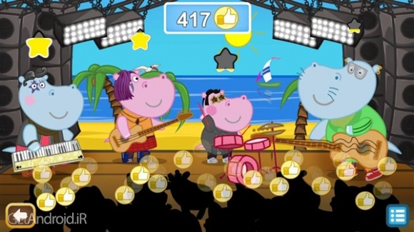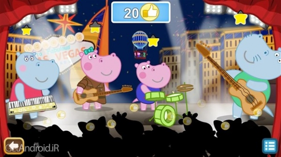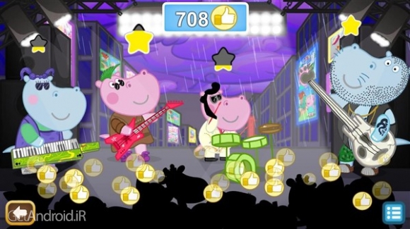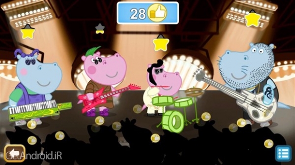 Rockstar: Baby Band 1.0.6 یک بازی ماجراجویی از استودیوی بازیسازی Hippo Kids Games می باشد که در مارکت اندروید بصورت رایگان منتشر شده است که تصمیم گرفتیم برای اولین بار در میان سایت های فارسی زبان در گت اندروید خدمت شما عزیزان معرفی نماییم. شما به عنوان یک گروه موسیقی هستید که به تورهای جهانی می روید ودر شهرهای بزرگ کنسرت می دهید. موسیقی می تواند هر کسی را به عنوان یک ستاره مشهور در جهان بسازد اما تبدیل شدن به یک ستاره آسان نیست. شما باید سخت کار کنید و آهنگ های مختلف بسازید تا گروه موسیقی تان موفق شود. به فروشگاه عمو الویس بروید و لباس های شیک و سازهای موسیقی برای اعضای Hippo خریداری کنید. شما باید انتخاب کنید چه موسیقی و آهنگی مورد علاقه مردم شهرهای بزرگ می باشد. یک مدیر باهوش می تواند هر تور را با موفقیت در استادیوهای بزرگ به پایان برساند.
