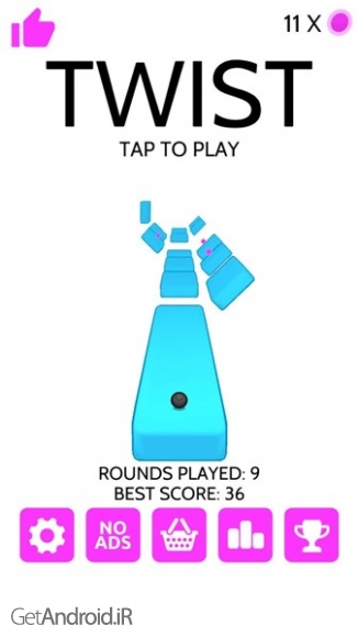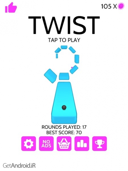 Twist 1.03 یک بازی آرکید از استودیوی بازیسازی Ketchapp می باشد که در مارکت اندروید بصورت رایگان منتشر شده است. در این بازی شما باید بر روی صفحه نمایش ضربه بزنید و توپ خود را کنترل کنید تا بپرد و از لبه ها سقوط نکند. جواهرات را برای باز کردن توپهای جدید و رنگ پلت فرم جمع آوری کنید. گت اندروید توپ خود را هدایت کنید و سعی کنید بهترین امتیاز را کسب کنید.