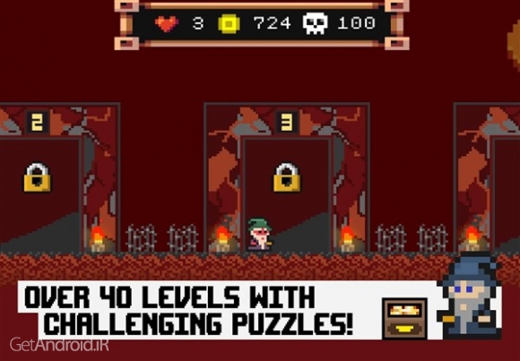 Pixel Wizard Adventures 2D 70 یک بازی پیکسلی دو بعدی در سبک بازیهای آرکید از استودیوی بازیسازی Spil Games می باشد که به تازگی در مارکت اندروید منتشر شده و تصمیم گرفتیم برای اولین بار در ایران و در میان سایت های فارسی زبان آنرا در گت اندروید معرفی کنیم. در این بازی فانتزی شما در نقش یک جادوگر پیکسلی هستید که باید وارد مکان های عجیب و غریب و پر رمز و راز شده و هیولاها ، غول ها و سایر دشمنان را نابود کنید. در میان راه خود با خفاش ها و ارواح و چاله های پر از گدازه و مواد مذاب برخورد خواهید کرد که باید تمامی این موانع را پشت سر گذارید تا بتوانید پادشاهی را نجات دهید. شما می توانید از میان شخصیت های موجود یکی را برای انجام بازی انتخاب کنید. توجه داشته باشید که با جمع آوری سکه ها میتوانید امتیاز خود را ارتقاء بخشید.