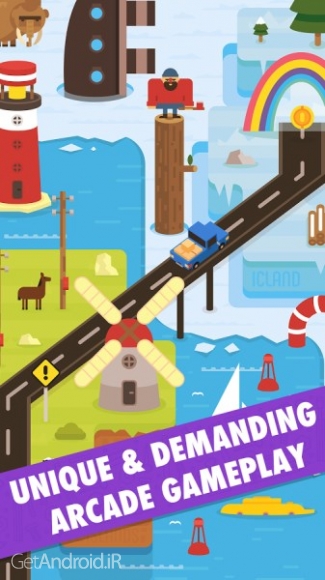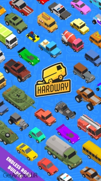 یک بازی آرکید از استودیوی بازیسازی Digital Melody می باشد که در مارکت اندروید بصورت رایگان منتشر شده است که تصمیم گرفتیم برای اولین بار در میان سایت های فارسی زبان در گت اندروید خدمت شما عزیزان معرفی نماییم. شما باید به ساخت جاده از سمت چپ یا راست بپردازید. همچنین باید با استفاده از جاده ها و پل ها جزایر را بهم متصل کنید. ماشین مورد علاقه خود را از بین بیش از 30 نوع اتومبیل انتخاب کنید و در 8 دنیای مختلف و منحصر به فرد به رانندگی بپردازید. از موانع مختلف مانند جزایر در حال حرکت، فانوس های دریایی و هیولاها عبور کنید.برخی از ویژگی های بازی Hardway - Endless Road Builder اندروید :