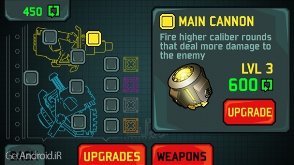 - ارتقا توپ خود و باز کردن سلاح های عالی