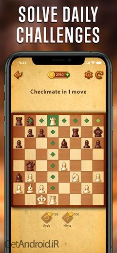 پازل های شطرنج را حل کنید و طلا به دست آورید. چه یک فرد مبتدی هستید و یا یک فرد ماهر باید هر مرحله را تکمیل کنید و به مراحل بعدی بروید. حرکات شطرنج بسیار محدود می باشد و شما باید با حرکت دادن مهره هایتان حریف را مات کنید. هدف بازی مات کردن حریف است. این بازی شطرنج برای سرگرمی یا آموزش کودکان و توسعه مهارت های فکری آنها بسیار مفید است. نکته هایی که در هر بازی موجود است به شما کمک می کند موفق ترین استراتژی ها را یاد بگیرید و این هم برای مبتدیان و هم شطرنج بازان با تجربه عالی می باشد. پس اگر به راهنمایی در مورد چگونگی انجام بهترین حرکت بعدی خود نیاز دارید می توانید از راهنمایی و نکات موجود در بازی استفاده کنید. با یادگیری حرکات جدید دوستان خود را شگفت زده کنید. بازی شطرنج در سراسر جهان رایج است، پس شما هم با عزیزان خود آنلاین بازی کنید و مغز خود را تقویت کنید.