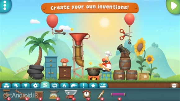 Inventioneers Full Version 4.0.2 یک بازی فکری از استودیوی بازیسازی Filimundus AB می باشد که در مارکت اندروید بصورت رایگان منتشر شده است. در اینجا شما باید اختراعات سرگرم کننده ایجاد کنید و با کمک مخترعان دیگر، اختراعات خلاقانه و عجیب و غریب بسازید. پس با یک ابزار عالی، فیزیک را بصورت ریل تایم و عناصر مختلف مثل آتش، مغناطیس، هوا و پریدن را یاد بگیرید و اختراعات جدیدی بسازید و از دوستان خود دعوت کنید تا اختراعات خود را به اشتراک بگذارند و همچنین شما می توانید اختراعات خود را به اشتراک بگذارید.