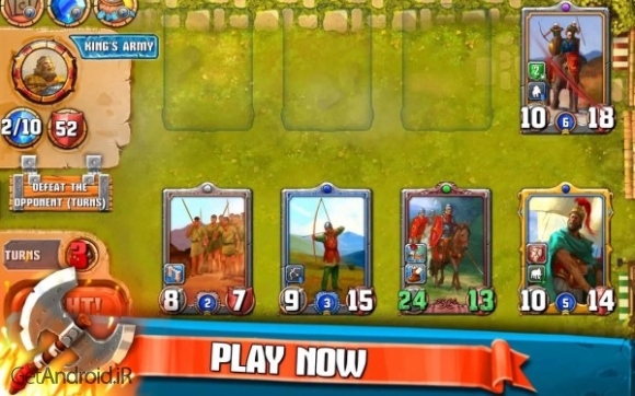 Heroes Empire: TCG 1.4.9 یک بازی کارتی آنلاین از استودیوی بازیسازی FrozenShard Games می باشد که بتازگی در مارکت اندروید منتشر شده و تصمیم گرفتیم برای اولین بار در میان سایت های ایرانی و فارسی زبان آنرا در گت اندروید خدمت شما معرفی کنیم کلکسیونی از کارت های مختلف در اختیار شماست که به وسیله آن باید امپراتوری خود را بنا نهاده و با با کمک بزرگترین قهرمانان تاریخی و افسانه ای مانند شاه آرتور، اسکندر کبیر، اسپارتاکوس، لئونیداس، هرکول، آشیل به بهترین بازیکن جهان تبدیل شوید. توجه داشته باشید همانطور که در ابتدای توضیحات خدمتتان عرض کردیم بازی آنلاین بوده و برای اجرا نیاز به اتصال به اینترنت دارد.