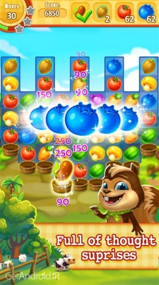 Harvest Mania - Match-3 Puzzle یک بازی پازلی از استودیوی بازیسازی JoyFox Inc می باشد که در مارکت اندروید بصورت رایگان منتشر شده است که تصمیم گرفتیم برای اولین بار در میان سایت های فارسی زبان در گت اندروید خدمت شما عزیزان معرفی نماییم. شما باید سه یا بیشتر از محصولات مشابه را با هم مطابقت دهید تا بتوانید آنها را حذف کنید. میوه ها و سبزیجات تازه در فصل برداشت محصول در انتظار شما هستند. پس با برداشت محصول و حذف تمامی آنها به قهرمان مزرعه تبدیل شوید و مراحل را یکی پس از دیگری پشت سر بگذارید. با حذف محصولات امتیاز کسب کنید و به رقابت با دوستان خود بپردازید و ببینید چه کسی بهترین امتیاز را کسب کرده است.