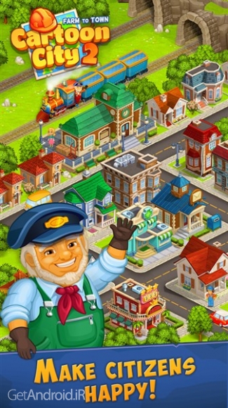 Cartoon city 2 یک بازی کژوال از استودیوی بازیسازی foranj می باشد که در مارکت اندروید بصورت رایگان منتشر شده است. شهر خود را بسازید و خانه خود را ایجاد کنید و آن را با دکورهای مختلف تزئین کنید و خیابان ها را زیبا کنید. در مزرعه های روستایی در نزدیکی شهر گندم، ذرت بکارید و گاو و مرغ پرورش دهید. براساس تصمیمات خود یک شهر رویایی بسازید. در شهر خود خیابان، جاده، پیاده رو ایجاد کنید و گل ها و گیاهان مختلف بکارید و بدین ترتیب شهروندان، دوستان و ساکنان آن را خوشحال کنید. ده ها منظره، کافه، رستوران، ویلا و خانه ایجاد کنید و کالاهای خود را با قطار به شهرهای همسایه ببرید و بدین ترتیب صدها ماموریت را تکمیل کنید. پس شهر خود را به بهترین و دلپذیرترین شهر در جهان تبدیل کنید.