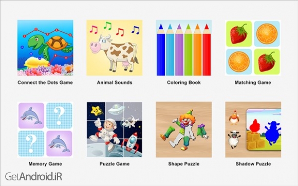 8 بازی آموزشی موجود در برنامه عبارتند از: