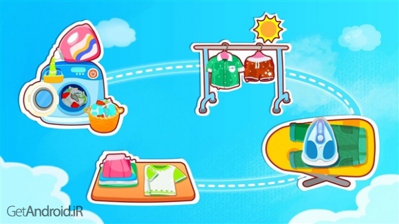 Happy Clean 8.22.00.00 یک بازی کودکانه از استودیوی بازیسازی BabyBus Kids Games می باشد که در مارکت اندروید بصورت رایگان منتشر شده است که تصمیم گرفتیم برای اولین بار در میان سایت های فارسی زبان در گت اندروید خدمت شما عزیزان معرفی نماییم. شما باید به پاندای داستان کمک کنید تا عروسک ها، دوچرخه و آشپزخانه کثیف را تمیز کند. همه جا کثیف است پس دست به کار شوید. با استفاده از این بازی می توانید به کودکان خود چگونه تمیز کردن وسایلشان را آموزش دهید و جهان را خودشان کشف کنند. لباس های کثیف و بدبو را بشویید و آنها را اتو کنید، سپس لباسهای تمیز را داخل کمد بچینید.