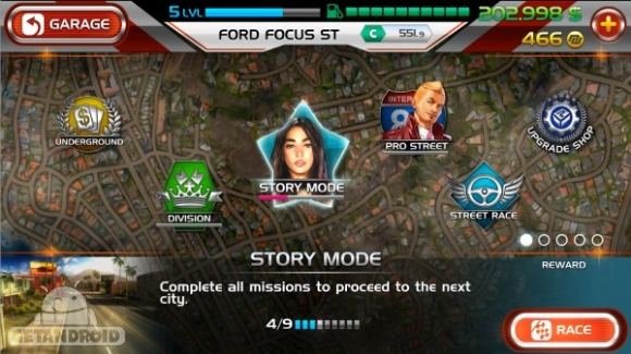 ✤ 5 حالت ماشین سواری (Story Mode, Street Race, Underground, Division and Pro Street)