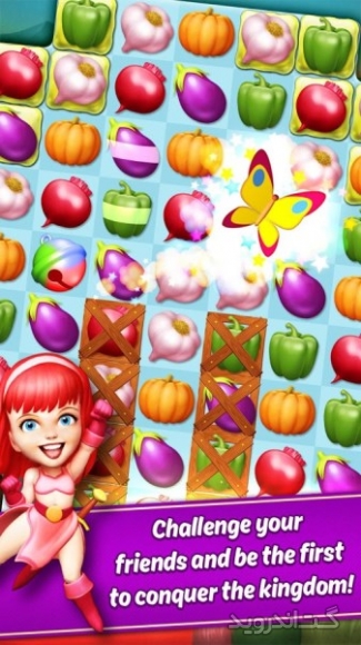 Kingcraft – Harvest Blast 2.0.156 یک بازی پازلی جدید از استودیوی بازیسازی Genera Games می باشد که بصورت رایگان در مارکت اندروید منتشر شده است. بدون شک همه شما با این سبک بازیها که در آن با قرار دادن سه شکل یا بیشتر در کنار هم آنها را حذف میکنید آشنا هستید و نیازی به توضیح بیشتر نیست. Kingcraft – Harvest Blast هم یکی از آنهاست که شما با قراردادن میوه ها یا جواهرات همرنگ در کنار بکدیگر باید اقدام به حذف آنها کنید. هنگامی که وارد بازی میشوید یکی از دو شخصیت ملکه و پادشاه را مییتوانید به اختیار برگزینید و وارد دنیای رنگارنگ بازی شوید. شما میتوانید رتبه دوستان خود را مشاهده کرده و با آنها سر امتیاز و کسب مدال طلا رقابت کنید. این بازی با گرافیک خارق العاده و صداگذاری بسیار زیبا ساعتها شما را سرگرم خود خواهد کرد.