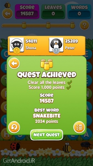 - وارد سایت گت اندروید شده و از بخش جستجو عبارت "WordBuzz: The Honey Quest" را تایپ کنید