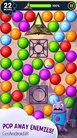 Home: Boov Pop! یک بازی پازلی از استودیوی بازیسازی Behaviour Interactive می باشد که در مارکت اندروید بصورت رایگان منتشر شده است. در اینجا که قوانین فیزیک را به چالش می کشد و براساس فیلم HOME: Boov ساخته شده است. شما باید 3 یا بیشتر از حباب های رنگی را با هم مطابقت دهید و بهم متصل کنید تا بتوانید آنها را حذف کنید و با شخصیت های دوست داشتنی فیلم به نام های Oh, Tip, Captain Smek و Pig بازی کنید و به ماجراجویی در سراسر جهان بپردازید و مراحل هیجان انگیز را پشت سر بگذارید و بدین ترتیب خودتان را به چالش بکشید. هر کدام از شخصیت ها دارای توانایی های منحصر به فردی می باشند که باید از آنها در مواقع لزوم استفاده کنید. همچنین می توانید از 3 نوع قدرت یو پی اس مختلفی که وجود دارد یکی را انتخاب کنید تا بتوانید مراحل را یکی پس از دیگری با موفقیت طی کنید.