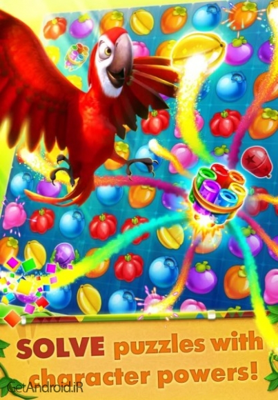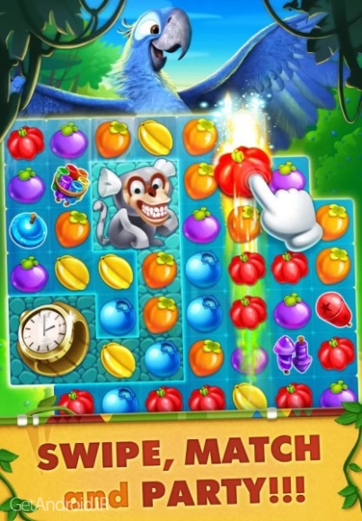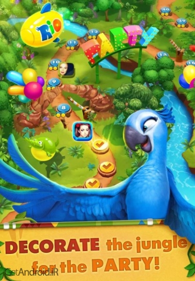 Rio: Match 3 Party 1.13.2 یک بازی پازلی از استودیوی بازیسازی Plarium Global Ltd می باشد که در مارکت اندروید بصورت رایگان منتشر شده است که تصمیم گرفتیم برای اولین بار در میان سایت های فارسی زبان در گت اندروید خدمت شما عزیزان معرفی نماییم. زمان برگزاری کارناوال در ریو می باشد و Blu در حال برنامه ریزی برای ایجاد شگفت انگیز ترین جشن در برزیل می باشد. همه دوستان خود مثل Jewel،Pedro و Nico را دعوت کرده اما خود بلو هنوز اماده نیست. شما باید او را راهنمایی کنید و با استفاده از توانایی های خاص هر یک از شخصیت ها و بوسترهای فوق العاده ای که وجود دارد پازل ها را حل کنید و مدال ها را جمع آوری کنید و قفل مراحل و مکان های جدیدتر را آنلاک کنید. پس با تمام شخصیت های مورد علاقه در برابر دوستان خود به رقابت بپردازید و مراحل را با موفقیت پشت سر بگذارید. در اینجا شما باید با کشیدن و تطبیق دادن میوه های همرنگ آنها را حذف کنید و امتیاز کسب کنید.