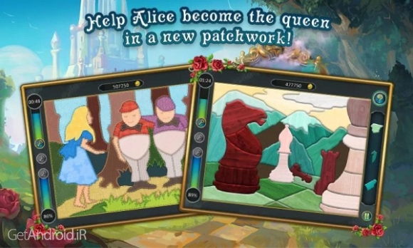 یک بازی پازلی از استودیوی بازیسازی 8FLOOR می باشد که در مارکت اندروید منتشر شده است. شما باید به همراه آلیس و در کنار دیگر شخصیت های معروف به ماجراجویی بپردازید و با جمع اوری موزاییک های درهم آمیخته، به آلیس کمک کنید تا به ملکه جهان تبدیل شود. پازل ها از 6 نوع مواد مختلف مثل چوب، پارچه، شیشه، کاغذ، سنگ های قیمتی و فلز ساخته شده است. در اینجا شما باید پازل های درهم آمیخته را جمع آوری کنید و تصویر را حدس بزنید و معماهای مختلفی مثل دوئل بین شیر و اسب تکشاخ و یا توطئه های ملکه سرخ را حل کنید تا بتوانید به آلیس کمک کنید از یک شخص معمولی به یک ملکه تبدیل شود.برخی از ویژگی های بازی Alices Patchwork 2 اندروید :