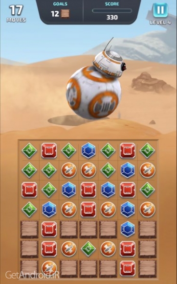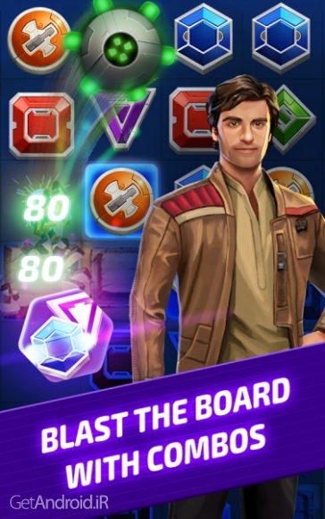 Star Wars: Puzzle Droids 1.5.25 یک بازی پازلی از استودیوی بازیسازی Disney می باشد که در مارکت اندروید بصورت رایگان منتشر شده است. به کاوش در کهکشان بپردازید و با شخصیت هایی مثل Rey، Finn و Poe Dameron سوار بر سفینه خود شوید و به ماجراجویی بپردازید. در اینجا همانند سایر بازیهای پازلی باید با قرار دادن سه یا بیشتر از آیتم های فضایی آنها را از هم حذف کنید و امتیاز کسب کنید و مراحل را با موفقیت پشت سر بگذارید. همچنین می توانید از انواع قدرت های یو پی اس برای کمک در مراحل مختلف استفاده کنید تا بتوانید اهداف خود را تکمیل کنید و مراحل را با موفقیت پشت سر بگذارید.