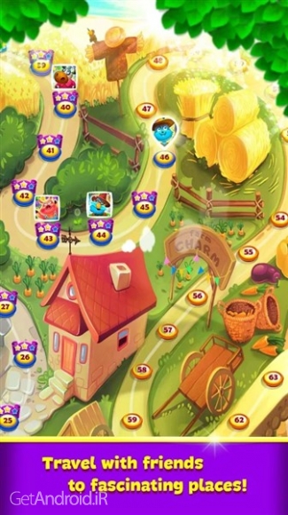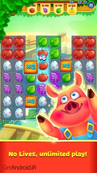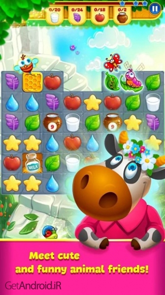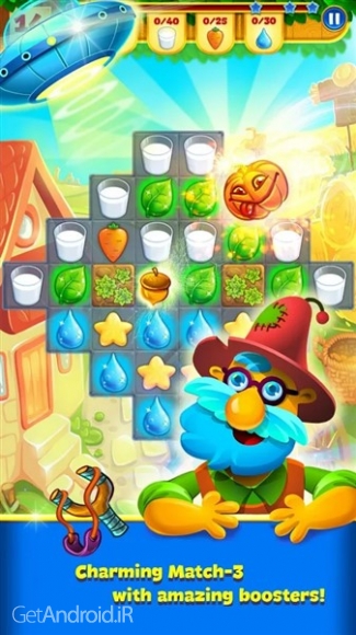یک بازی پازلی از استودیوی بازیسازی SmileyGamer Match 3 Games می باشد که در مارکت اندروید بصورت رایگان منتشر شده است. زمان برداشت در مزرعه پدربزرگ جو است. این کشاورز قدیمی در یک روستا با دوستان حیوانی خود مثل Mr. Piggy, Mr. Baa-lamb, Madam Frog, Miss Turkey, Moo the Cow و Monsieur Bunny زندگی می کند. سفر آنها را در این روستای شگفت انگیز و در اطراف مزرعه هدایت کنید. در طول راه باید سیب، هویج، ستاره و غیره را جمع اوری کنید. پس با مطابقت دادن سه یا بیشتر از شکل های مشابه آنها را حذف کنید. همچنین می توانید از انواع بوسترها استفاده کنید. با تطبیق دادن 4 یا 5 مورد از شکل های مشابه پرتوهای مختلفی به وجود می آید که این آیتم ها را با دو برابر ارزش خود حذف می کند. در طول راه کارهای مختلفی مثل آزاد کردن پرندگان، کمک به زنبورها برای جمع اوری عسل و رشد قارچ ها و غیره را انجام دهید. حیوانات مورد علاقه و خانگی پدر بزرگ هر کدام دارای توانایی خاصی می باشند که می تواند یک نوع از اقلام را جذب کند.برخی از ویژگی های بازی Farm Charm - Match 3 اندروید :