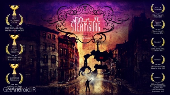 Steamburg 1.1 یک بازی پازلی از استودیوی بازیسازی Anuman می باشد که در مارکت اندروید منتشر شده است. در این بازی اندروید شخصیت اصلی پروفسور وینسنت کورنلیوس مور (Vincent Cornelius Moore) می باشد که در برابر مبارزه رباتها که به شهر Steamburg حمله کردند مقابله می کند. وینسنت غیر مسلح است و هیچ سلاحی با خود ندارد، پس باید عاقلانه مسیر حرکت خود را انتخاب کند. شما باید در نقش وینسنت در خیابان ها راه بیفتید و از دست ربات هایی که شما را دنبال می کنند فرار کنید. شما باید همزمان با چندین ربات مبارزه کنید. روز به روز ربات ها سریع و سریع تر می شوند، بعضی از آنها می توانند پرواز کنند و یا هر حرکتی انجام دهند.