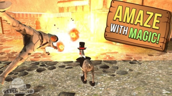 Goat Simulator MMO Simulator 1.3.3 سری جدیدی بازی شبیه سازی بز از استودیوی Coffee Stain Studios برای اندروید است که پس از عرضه شدن دو نسخه ی Goat Simulator و Goat Simulator GoatZ حالا نسخه جدید آنرا با قیمت 4.99 دلار در مارکت اندروید عرضه کرده است. در این بازی شما کنترل یک بز را در شهری شلوغ بر عهده خواهید داشت و باید تا می توانید دقت کنید تا به ماشین ها برخورد نکنید و زامبی ها و افرادی که قصد گرفتن شما را دارند را با شاخ های خود نابود نمایید، محیط بازی جهان آزاد بوده و می توانید تا ساعت ها شما را به چالش بکشد. بازی از گرافیکی بالا و زیبایی بهره می برد و دارای محیطی طبیعی و فیزیک واقع گرایانه می باشد.