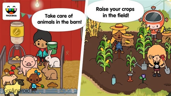 یک بازی شبیه سازی از استودیوی بازیسازی Toca Boca می باشد که در مارکت اندروید به قیمت 2.99 دلار منتشر شده است. شما باید در نقش یک کشاورز به کارهای مختلف و کشاورزی بپردازید. شیر گاو خود را بدوشید و تخم مرغ ها را جمع اوری کنید. همچنین برای افزایش محصولات کشاورزی خود از طلوع تا غروب آفتاب در مزرعه به کشاورزی بپردازید. شما در 4 مکان مختلفی که در مزرعه تان قرار دارد مشغول می شوید، مثلا مکانی برای نگهداری حیوانات که باید در انجا به آنها غذا بدهید و مدفوع شان را تمییز کنید. وقتی شما به عنوان یک کشاورز در مزرعه کار می کنید باید محصولات خود را برداشت کنید و آنها را به فروشگاه ببرید و مواد غذایی را به فروش برسانید تا بتوانید محصولات جدید و کالاهای مورد نیاز خود را خریداری کنید. دانه های گیاهی را بکارید و آنها را رشد دهید و با استفاده از تراکتور آنها را برداشت کنید و با ماشین آلات مختلف، مواد غذایی خام مثل شیر را به پنیر، پنیر و ذرت به پفک، انواع توت ها را به مربا و گندم را به نان تبدیل کنید.برخی از ویژگی های بازی Toca Life: Farm اندروید :