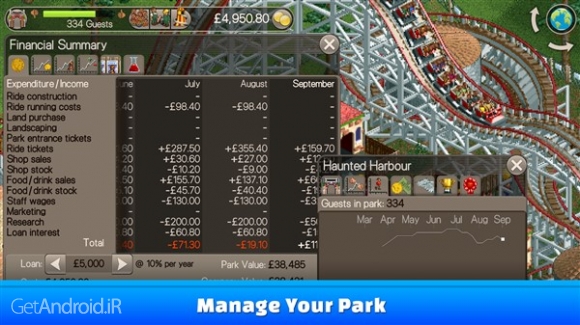 برخی از ویژگی های بازی RollerCoaster Tycoon® Classic اندروید :