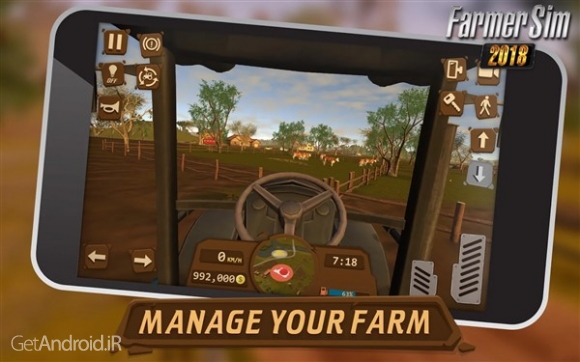 یک بازی شبیه سازی از استودیوی بازیسازی Ovidiu Pop می باشد که در مارکت اندروید بصورت رایگان منتشر شده است. در اینجا شما باید به یک کشاورز واقعی تبدیل شوید. انواع مختلفی از محصولات را بکارید و آنها را برداشت کنید. دام خود را مدیریت کنید و گاو، گوسفند، بوقلمون و خوک پرورش دهید. در اینجا شما می توانید با ماشین ها، تراکتورها، کامیون ها، تریلرها و غیره در زمین کشاورزی خود بذر بکارید و آنها رابرداشت کنید و برای فروش به بازار ببرید.برخی از ویژگی های بازی Farmer Sim 2018 اندروید :