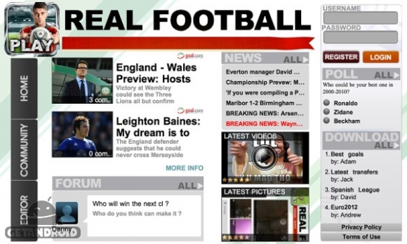 - وارد سایت گت اندروید شده و از بخش جستجو عبارت "Real Football 2012" را تایپ کنید