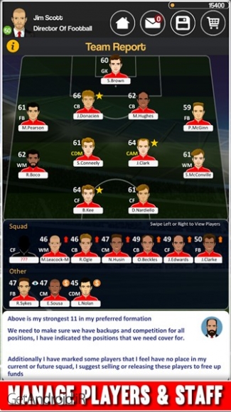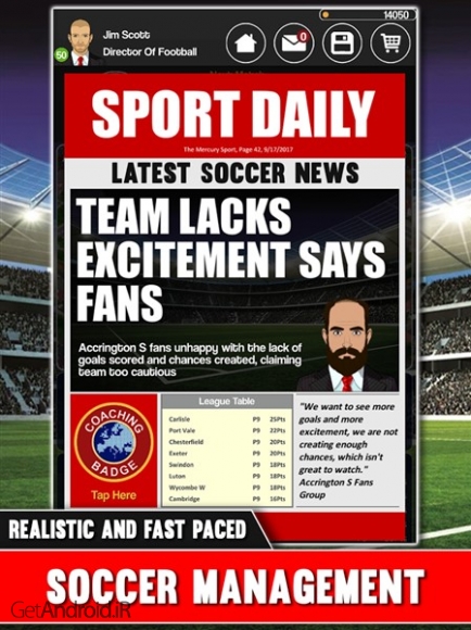 برخی از ویژگی های بازی Club Soccer Director اندروید :