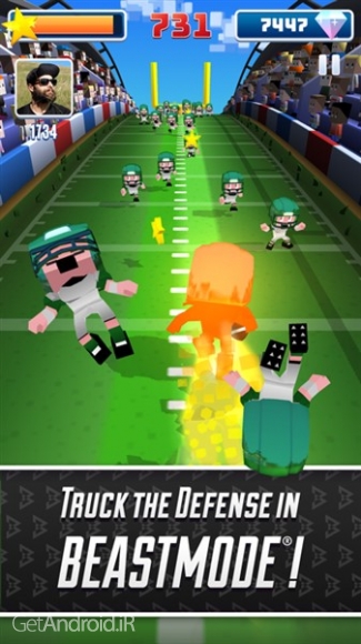 Marshawn Lynch Blocky Football 1.3.1_192 یک بازی ورزشی از استودیوی بازیسازی Full Fat می باشد که در مارکت اندروید بصورت رایگان منتشر شده است که تصمیم گرفتیم برای اولین بار در میان سایت های فارسی زبان در گت اندروید خدمت شما عزیزان معرفی نماییم. شما باید بدوید و حمله کنید و مانور دهید. شما باید برای شروع بازی بر روی صفحه ضربه بزنید و برای چرخاندن شخصیت دو بار ضربه بزنید و امتیازاتی که بر سر راهتان می باشد را جمع اوری کنید و شخصیت های جدید را آنلاک کنید. با استفاده از حالت BEAST MODE به رقیبان خود حمله کنید و از خودتان دفاع کنید و بدین ترتیب مراحل را با موفقیت پشت سر بگذارید.