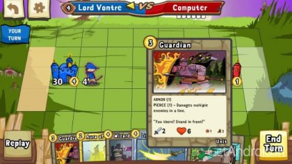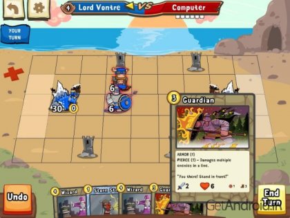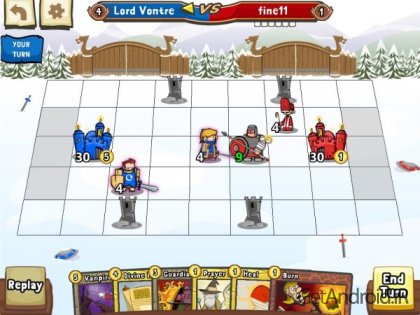 بازی Cards and Castles 3.5.51 محصولی از استودیوی Bit Mass که به تازگی در مارکت گوگل انتشار یافته است ، تقریبا یک بازی شبیه به شطرنج شطرنج به همان سبک قدیمی و با همان قوانین و خصوصیات است اما تفاوت ها و خصوصیت های جالی نیز به آن افزوده شده است که جذابیت بازی را دو چندان بیش از پیش می کند ، بازی شطرنج را به خاطر دارید مربعی هشت در هشت که هر بازیکن به تعداد 16 بازیکن با شکل ها و قدرت ها و قوانین مختلف بر روی صفحه حضور داشتند. در این گیم شما با خانه ای مستطیل شکل رو به رو خواهید بود که معمولا به صورت نه در پنج می باشد. برای ورود بازیکنان به این صفحه می بایست یک سری بازی های کارتی را انجام دهید و طبق آن ها نیروهای خود را در طول صفحه به حرکت درآورید.