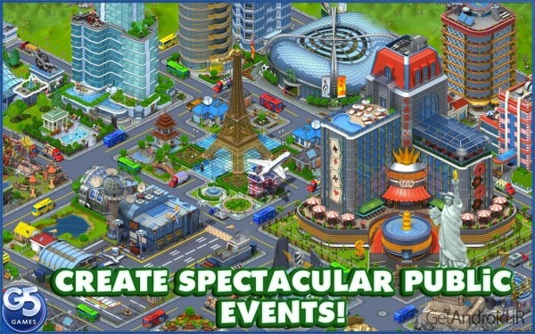Virtual City Playground® 1.21.101 به فارسی (شهر مجازی تفریحگاه) یکی از زیباترین و پرطرفدارترین بازی های شهرسازی از استودیوی بازیسازی معروف جی ۵ (G5) برای سیستم عامل اندروید می باشد که در آن انواع ابزارهای مختلف برای ساخت شهر رویاهای خود در اختیارتان قرار میگیرد تا تجربه ای جدید و متفاوت از ساخت یک شهر صنعتی و پیشرفته را در اسمارت فون و یا تبلت اندرویدی شما به ارمغان بیاورد. در بازی Virtual City Playground شهر رویایی خود را بسازید . اگر می خواهید که یک شهردار خوب باشید ، حتما این بازی را بر روی اسمارت فون اندرویدی خود تجربه کنید . با راه اندازی سیستم حمل و نقل ، پارک ها ، سینماها ، استادیوم و … شهر خود را به یک شهر رویایی تبدیل کنید . در این بازی ساختمان های خانگی، مسکونی، اداری و تجاری شیک و لوکس می سازید . محصولات کشاورزی تولید کرده و در بازار می فروشید، خطوط حمل و نقل و مسافربری راه می اندازید، با کاشت درختان و بازیافت زباله یک شهر سبز تولید می کنید و با راه اندازی نمایشگاه ها و مکان های تفریحی مردم شهرتان را راضی نگه می دارید. لازم به ذکر است که بیش از ۱۰۰ دستاورد در این بازی وجود دارد .