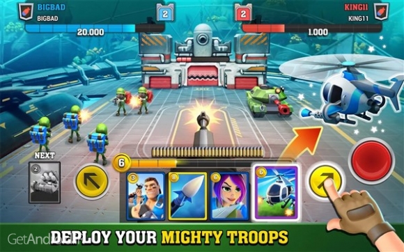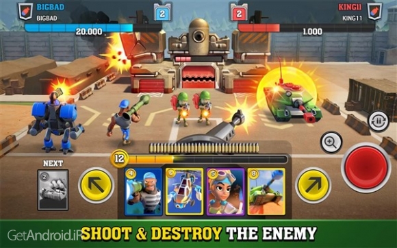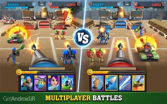 یک بازی اکشن از استودیوی بازیسازی Hothead Games می باشد که در مارکت اندروید بصورت رایگان منتشر شده است. ماموریت شما از بین بردن پایگاههای دشمن می باشد. شما باید به سمت آنها تیراندازی کنید و با استفاده از تمام مهارت های خود و انتخاب استراتژی مناسب پایگاههای مخالفان خود را از بین ببرید و از پایگاهای خود محافظت کنید. یک تیم از واحدهای منحصر به فرد بسازید و آنها را در نبرد هدایت کنید و در نبردهای ریل تایم 1v1 مبارزه کنید. شما باید 40 سرباز مختلف، وسایل نقلیه گوناگون، سلاح ها و وسایل دفاعی متنوع را جمع آوری کنید. با استفاده از اسلحه خود به سمت دشمن شلیک کنید و پایگاههای دشمنان را نابود کنید و بدین ترتیب با بازیکنان دیگر از سراسر جهان رقابت کنید و آنها را به چالش بکشید. دشمنان خود را شکست دهید و واحدها، پول، طلا و سایر منابع ارزشمند آنها را جمع آوری کنید و با استفاده از آن نیروهای خود را ارتقا دهید و تیم خود را قوی تر کنید.برخی از ویژگی های بازی Mighty Battles اندروید :