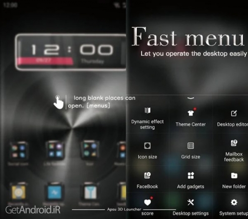 APSU Launcher 3D با یک موتور انیمیشن 3D و با اثرات گرافیکی، تم های 3D و ویدجت ها را ارائه می دهد