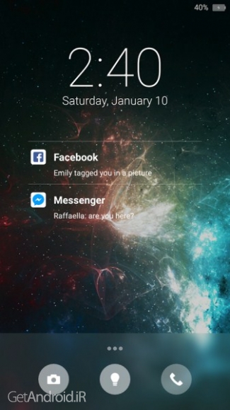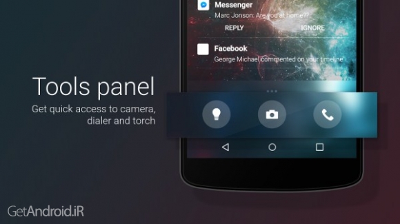 ✤ پانل میانبر: دسترسی سریع به چراغ قوه، شماره گیر و یا دوربین