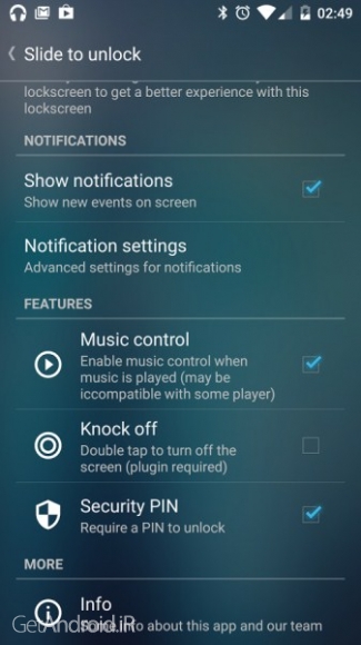 برخی از ویژگی های نرم افزار Slide to unlock اندروید :