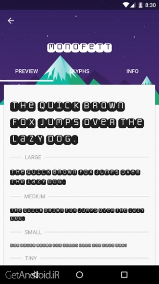 برنامه ای کاربردی برای تغییر فونت سیستمی در گوشی با تبلت شماست . این برنامه از دستگاه های سامسونگ دارای قابلیت FlipFont® و یا دستگاه های روت شده پشتیبانی میکند. توسط این برنامه به صدها فوت زیبا و استاندارد که توسط طراحان گرافیک و وب سایت های محبوب تولید شده اند دسترسی دارید . تمامی فونت ها برای استفاده شخصی رایگان بوده و شما به تمامی آنها دسترسی خواهید داشت. تمامی فونت ها دارای پیش نمایش قبل از نصب بوده که میتوانید فایل هر فونت را از اینترنت دانلود و استفاده کنید. شما میتوانید از فونت های خود پشتیبان تهیه کرده و آنها را در حافظه داخلی یا کارت SD ذخیره کرده یا آنها را در سرویس های ابری مانند DropBox ، Google Drive ، OneDrive یا سرویس های دیگر ذخیره کنید. شما حتی قابلیت اشتراک گذاری فونت ها را در شبکه های اجتماعی دارید. با طراحی متریال این نرم افزار شما از دانلود، مشاهده، و نصب فونت لذت خواهید برد . بیش از 5 میلیون نفر از مردم سراسر جهان از این برنامه استفاده می کنند ، پس منتظر چه هستید ؟ گت اندروید برای اولین بار در ایران و در میان سایت های فارسی زبان نسخه کامل این اپلیکیشن را برای شما عزیزا قرار داده است و پیشنهاد میکند در صورتی که قصد تغییر ظاهر تکراری فونت های گوشی خود را دارید ، آنرا امتحان کنید.برخی از ویژگی های برنامه FontFix PRO اندروید :