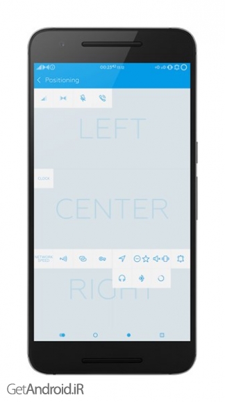 - تغییر موقعیت داده ها، وای فای، باتری، ساعت، برچسب حامل، هشدار، بلوتوث، محل چپ، مركزی و راست برای شاخص صدا و مكان