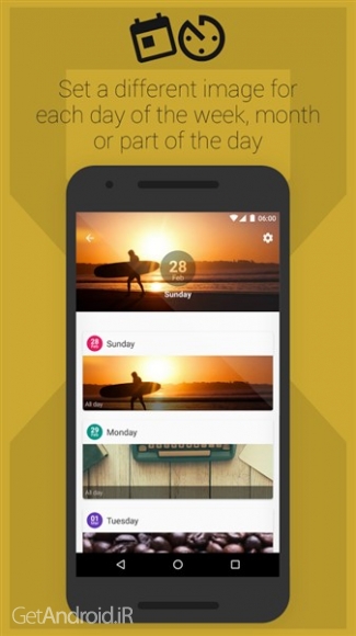 برنامه ایست که با آن می توانید تصویر پس زمینه در گوشی های اندروید خود را مدیریت کنید. حتما شما کاربران گرامی هم گاهی حس کرده اید که از دیدن یک تصویر پس زمینه تکراری در گوشی اندروید خود خسته شده اید. ازاین پس GetAndroid با این برنامه به شما این امکان را می دهد که یک تصویر متناسب با موقعیت های مختلف زندگی روزمره خود انتخاب کنید و دیگر از دیدن تصویر پس زمینه تکراری خسته نشوید. این برنامه باتوجه به قابلیتهای خود امتیاز بالای 4/1 را در گوگل پلی ثبت کرده است.شما میتوانید با این برنامه تصاویر مختلفی براساس این شرایط انتخاب کنید: