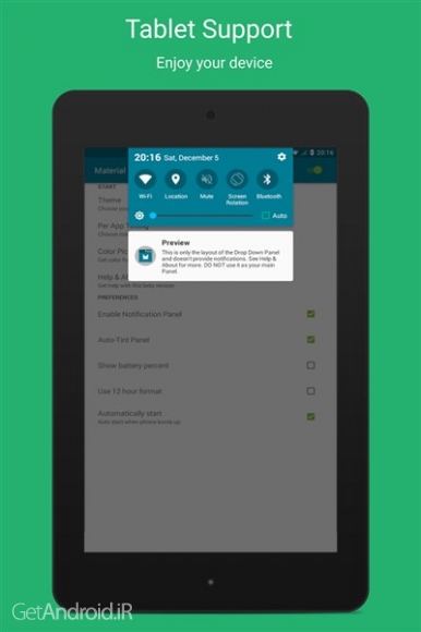 ویژگیهای برنامه Material Status Bar Pro اندروید :